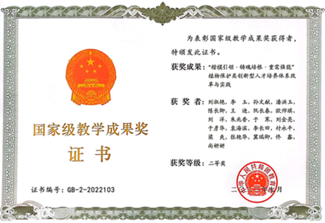 学校植物保护学院刘淑艳教授作为负责人、李玉院士指导的《“楷模引领·铸魂培根·重需强能”植物保护类创新型人才培养体系改革与实践》项目荣获国家级教学成果二等奖。本届吉林省省属院校获国家级高等教育教学成果奖共2项,我校是唯一连续两届获高等教育教学成果奖的高校。同时,学校获省级特等奖1项、一等奖2项、二等奖 4 项、三等奖 4 项。