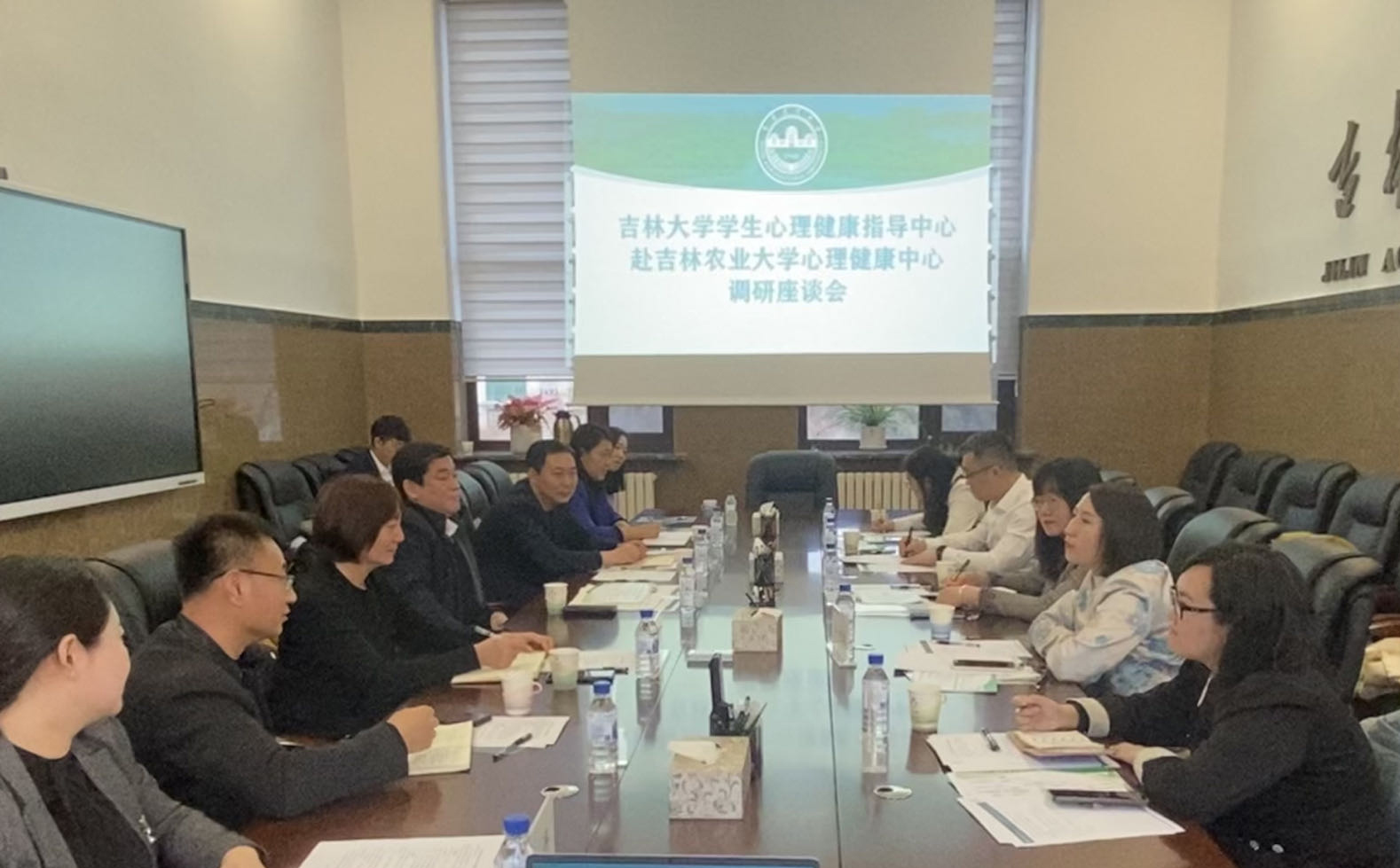 心理健康中心主任管清华从中心人员配置、学校三级危机干预体系、学生心理健康活动、心理健康教育课程建设、心理咨询建设等方面分享了吉林农业大学心理健康工作的主要做法与成效、思考及建议。学校农学院团委书记李丹结合具体案例介绍了学院“排查监测机制”“规范化的管理流程”“心理危机干预”三套心理工作拓扑图。随后,双方围绕思政队伍心理健康教育能力提升、辅导员参与心理健康工作情况、复学评估、大学生心理联合会建设、咨询师专业成长等相关工作展开深入交流,吉林大学学生心理健康指导中心副主任白仲琪介绍了吉林大学“基于应激-素质模型的心理健康教育大数据平台”。