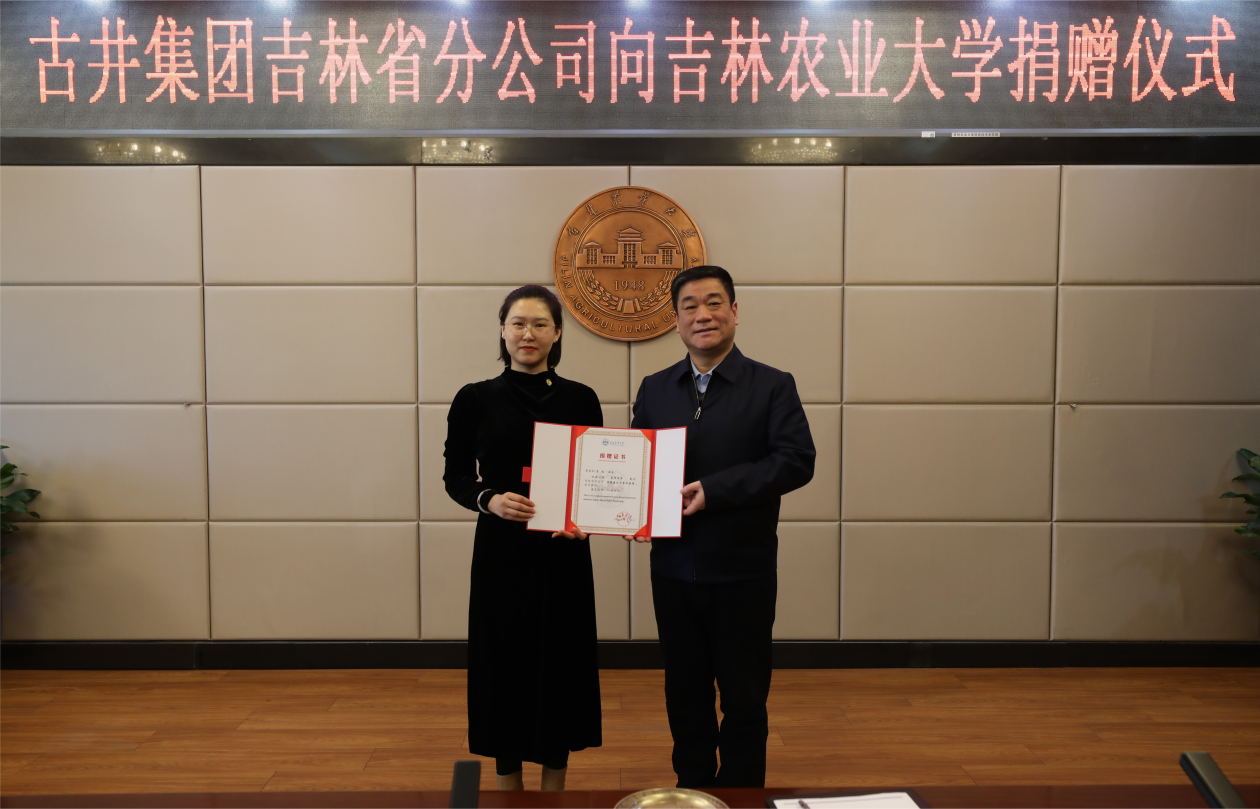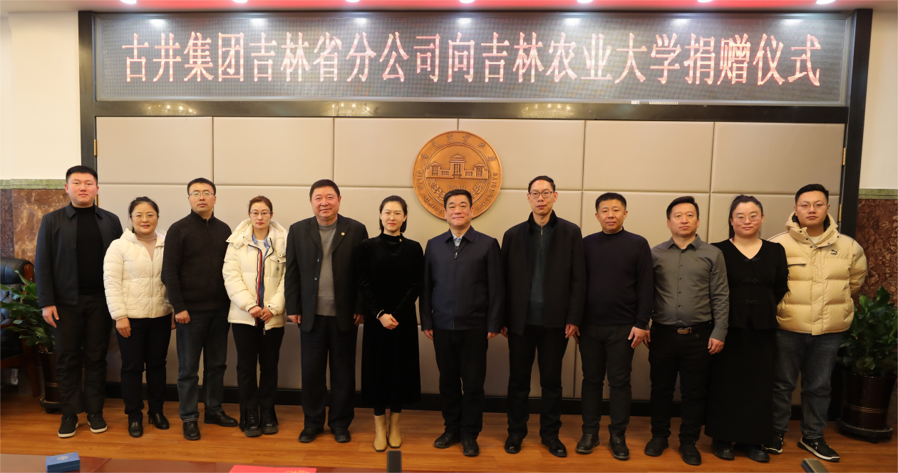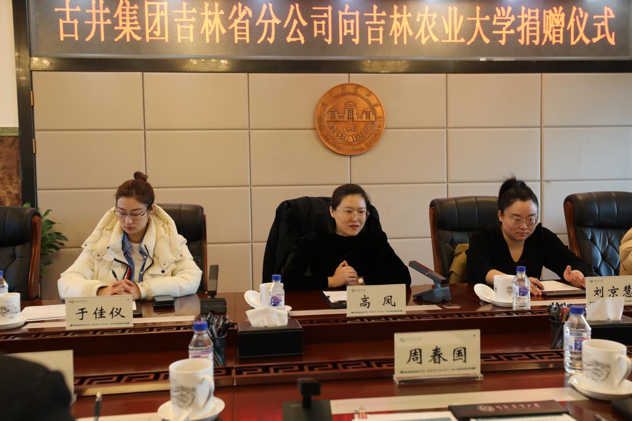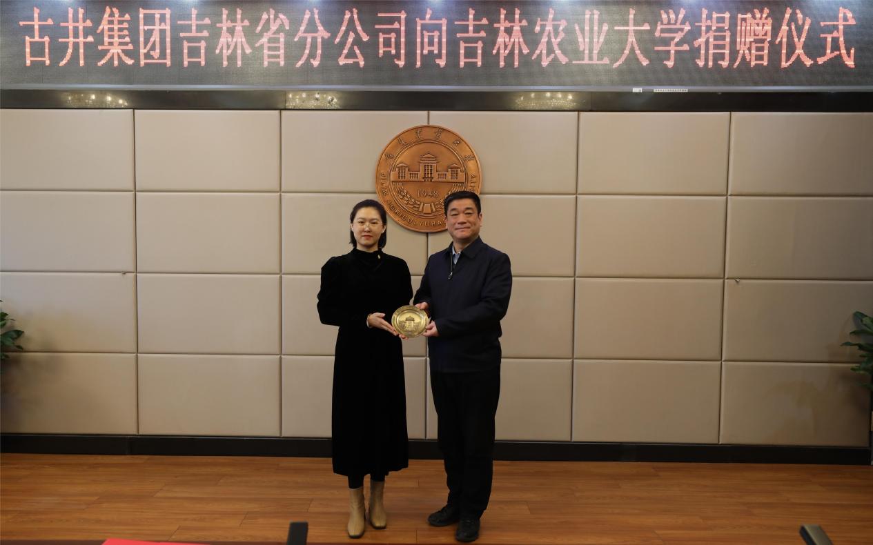 1月19日上午,古井集团吉林省分公司向吉林农业大学捐赠仪式在行政楼中四楼会议室举行。学校党委副书记、校友总会会长周春国与我校2008级食品科学学院校友、古井集团吉林省分公司总经理高凤出席捐赠仪式。