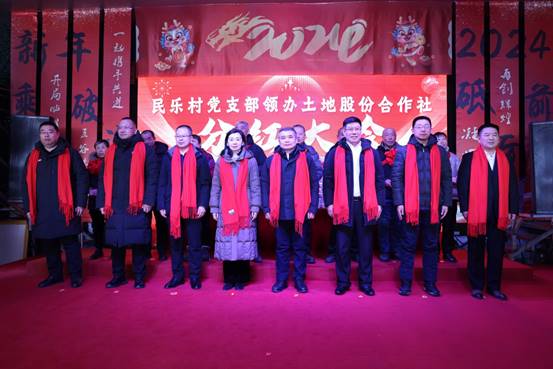 上午10点,在民乐村活动中心院内分红大会开始,大会由大洼镇党委书记杨天宝主持。会上,吕文发,中国农业银行吉林省分行副行长秦翰,新华社吉林分社副社长褚晓亮,吉林云天化农业发展有限公司副总经理吴刚,松原市宁江区区委副书记、区长张黎等相关单位领导为合作社成员代表发放现金分红。分红大会结束后,吉林农业大学、吉林云天化农业发展有限公司与民乐村签订三方框架合作协议。