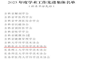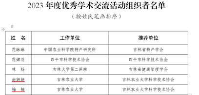 近日,吉林省科协公布《2023年度吉林省科协学会学术工作评优表彰结果的通知》,吉林农业大学科学技术协会荣获2023年度吉林省科协学会学术工作先进集体。我校农学院梅楠、科技管理处尚妍妍荣获2023年度优秀学术交流活动组织者。