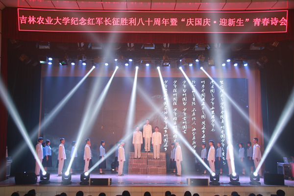 为纪念红军长征胜利80周年、建国67周年、欢迎2016级新同学,弘扬中华民族传统文化,营造良好的校园文化氛围。9月26日,我校在鲲鹏学生文化活动中心举办了纪念红军长征胜利80周年暨“庆国庆·迎新生”青春诗会。学校领导席岫峰、秦贵信,陈光、徐文生、王志中、毛彦军出席了本次活动。
