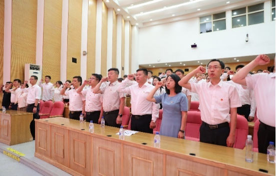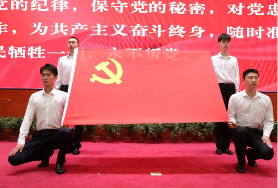 全体党员面向党旗,重温了入党誓词。