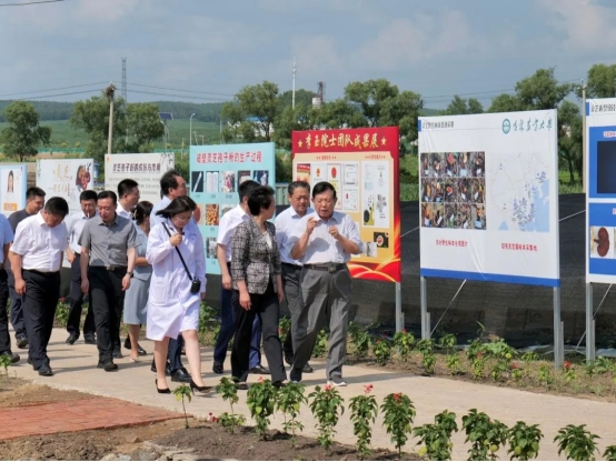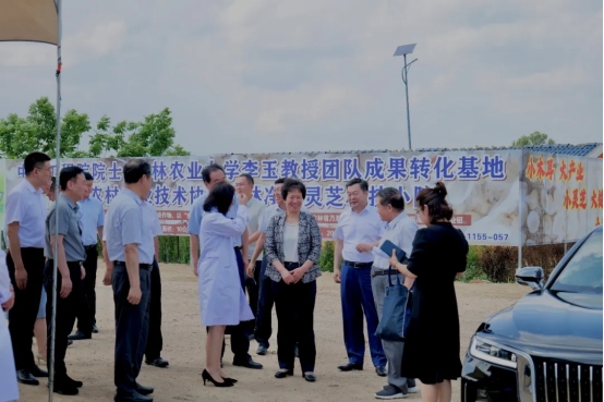 7月16日,吉林省委副书记吴海英到学校净月灵芝科技小院围绕加快促进科技创新和产业创新深度融合、加快科技成果转化等工作进行调研。吉林省委副秘书长邱成,省科协党组书记、副主席陈耀辉,省科协一级巡视员穆晓东,省教育厅副厅长刘学军,长春市净月高新技术产业开发区管理委员会主任丁慧东,学校党委书记张殿锋、校长杜锐陪同调研,中国工程院院士、吉林农业大学教授李玉向调研组介绍情况。