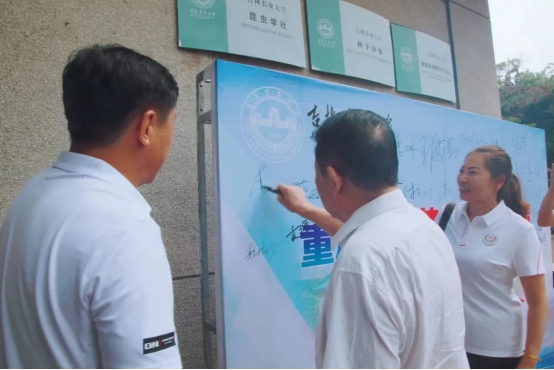 师生代表们在签名墙上签字,表达对母校的深切祝福。