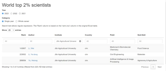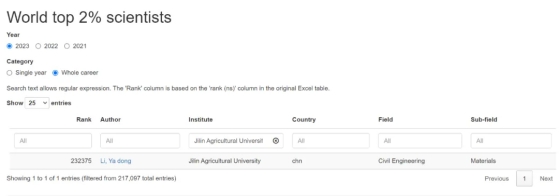 9月16日,美国斯坦福大学(Stanford University)与爱思唯尔(Elsevier)联合发布2024年度“全球前2%顶尖科学家榜单”(World’s Top 2% Scientists)。我校李伟教授、于合龙教授、李亚东教授3位学者入选“年度科学影响力排行榜”,李亚东教授还同时入选“终身科学影响力排行榜”。