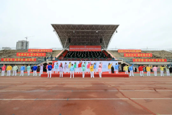 最后,2024年新生开学典礼暨军训表彰大会在与会师生合唱校歌《我们是骄傲的大地之子》中圆满结束。