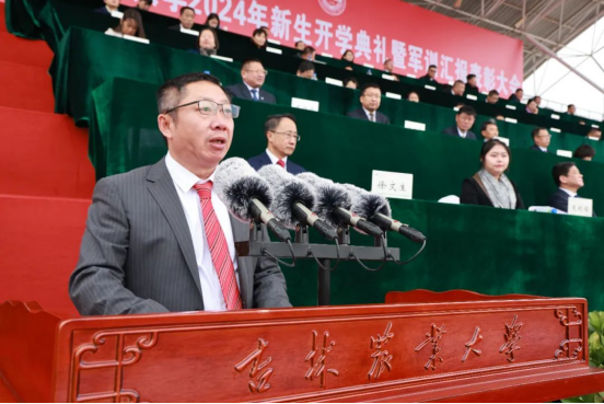 学校各部门负责人、各二级党组织书记、各学院院长,学工干部、教师代表和2024级全体新生参加开学典礼。