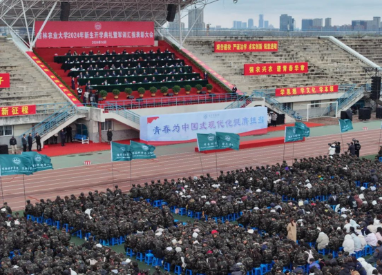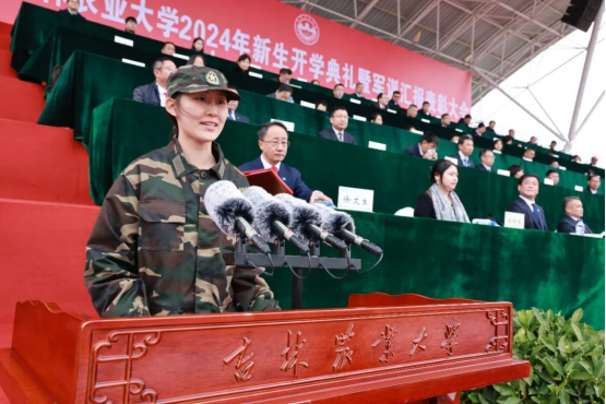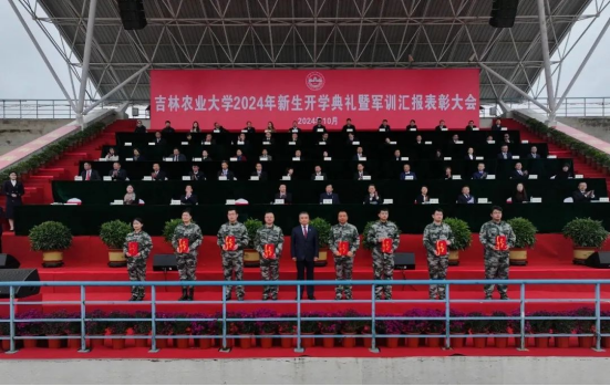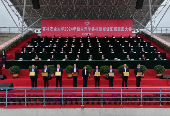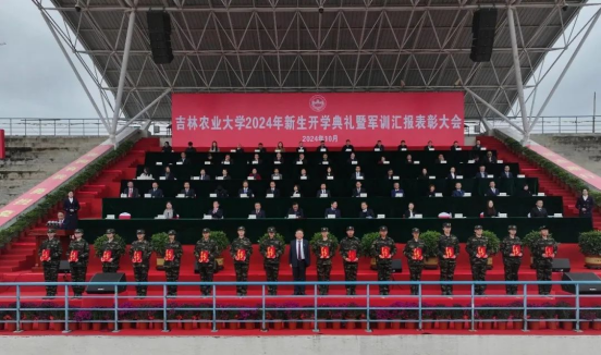 10月21日上午,吉林农业大学2024年新生开学典礼暨军训汇报表彰大会在学校运动场举行。学校党委书记张殿锋,校长杜锐,中国工程院院士、校学术委员会主任李玉,校纪委书记、省监委驻校监察专员王宏,副校长吕文发,校党委副书记周春国,副校长孙文献、马红霞、周春涛出席开学典礼。典礼由校党委副书记徐文生主持。