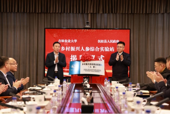 会上,杜锐与曾钒胜共同为吉林农业大学乡村振兴抚松综合实验站(人参)揭牌。