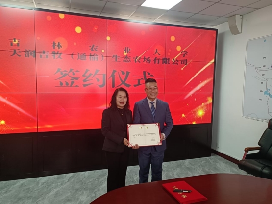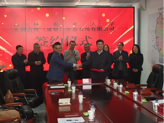 11月7日,吉林农业大学与天润吉牧(通榆)生态农场有限公司签约暨吉农天润吉牧肉牛产业研究院揭牌仪式在通榆县举行。白城市委常委、副市长夏晖,通榆县委常委、副县长李长仁,学校副校长吕文发、马红霞出席活动。
