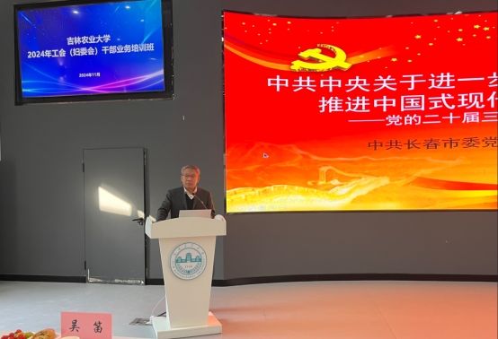 本次培训班学校邀请了中共长春市委党校马克思主义学院吴笛教授和吉林医药学院罗正里教授分别作了题为《中共中央关于进一步全面深化改革、推进中国式现代化的决定》专题讲座和《走进“心”时代》心理健康讲座。