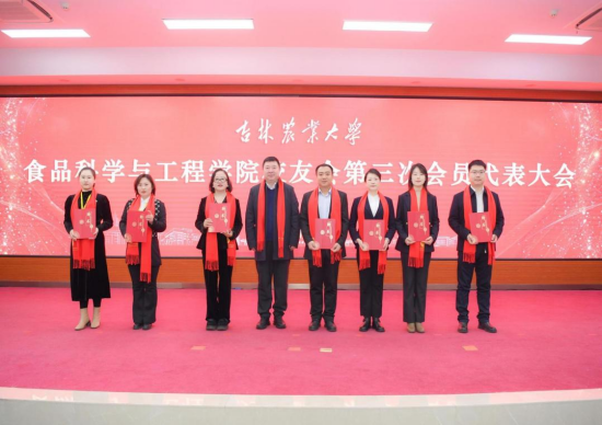 大会听取了《吉林农业大学食品科学与工程学院校友会换届筹备工作报告》,审议通过了《吉林农业大学食品科学与工程学院校友会章程(修订稿)》,选举产生了吉林农业大学食品科学与工程学院校友会第三届理事会理事、常务理事,会长、执行会长、副会长、秘书长、副秘书长。