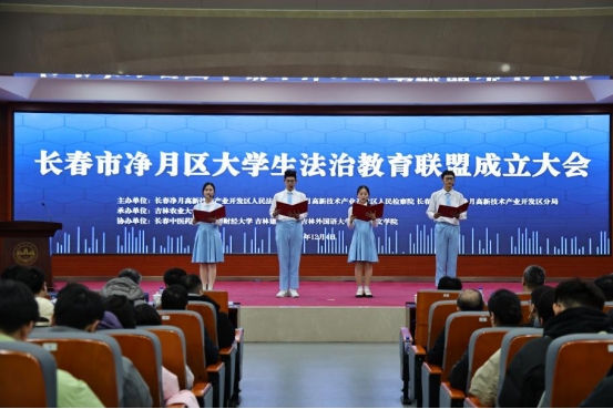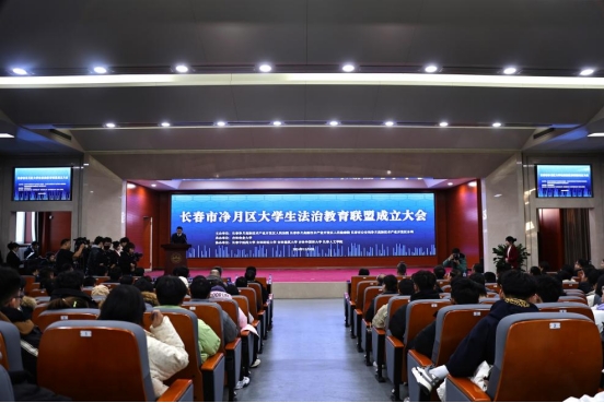 长春净月高新技术产业开发区人民法院院长贾晓红宣读了《关于成立长春市净月区大学生法治教育联盟的倡议书》,她表示,联盟应通过整合各方资源、建立长效机制,推动形成共建、共治、共享的高校法治教育模式,在大学生保护和犯罪预防、校园安全防护、教育教学资源共享、学生活动交流与协作等方面开展深度合作,营造良好的校园法治文化氛围。
