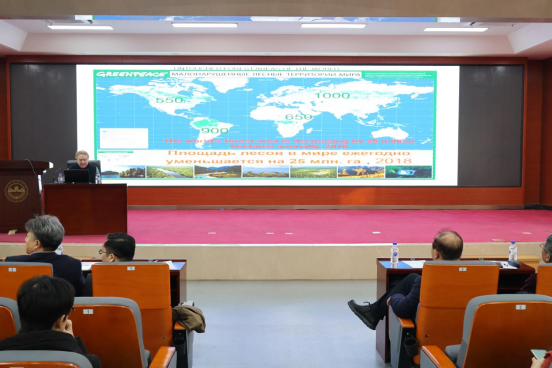会谈结束后,亚历山大·朱琴科在综合楼一楼报告厅为我校师生做了题为《世界遗传资源与改善环境的植物技术》的报告。