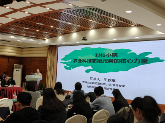 在发言中,王秋举以《科技小院是农业科技志愿服务的核心力量》为题,分别从科技小院是志愿服务的起点,志愿服务工作中难忘的事,未来的志愿服务计划三个方面,详细介绍了带领研究常年在农村生产一线开展科技志愿服务的经历和感想,也对未来科技志愿服务工作做了美好展望。