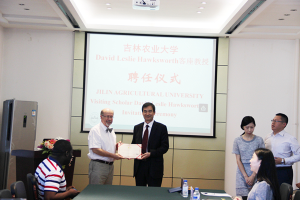 David Leslie Hawksworth、Patricia E.J.Wiltshire也发表了讲话,对我校热情的接待表示感谢,并回顾了与李玉院士建立的20多年的友谊,以及在菌物学等领域的良好合作,表示将竭尽所能推动中英双方团队在多领域的合作与交流,并把在我校访问所取得的成果带回英国,充当我校和英国自然历史博物馆和英国剑桥大学未来合作交流的使者。国际合作与交流处处长魏晓明,科技出版部主任宋长占参加了聘任仪式。