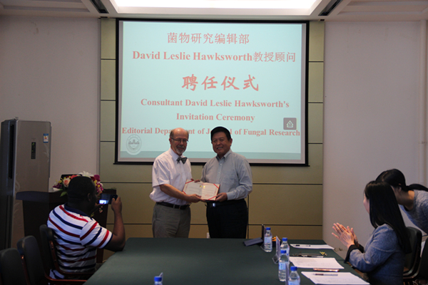 聘任仪式由食药用菌教育部工程研究中心主任王琦主持。仪式上,秦贵信向David Leslie Hawksworth、Patricia E.J.Wiltshire颁发了客座教授聘书;李玉向David Leslie Hawksworth颁发了菌物研究编委会顾问聘书。