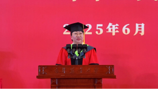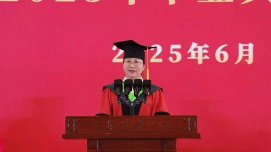 李启云代表全校教职工向顺利完成学业的同学们表示祝贺!向辛勤培育同学们的家长和教职员工们表示感谢!他深情回顾了2025届毕业生在校学习生活的点点滴滴,希望毕业生们不仅要做实干家,更要当“新农人”,主动拥抱生物技术、人工智能等新技术,自觉投入到农业科技自立自强的宏伟事业中。要做“会扎根的AI”,既有算力、更有定力。要当“懂温差的蘑菇”,既能耐住寂寞、也会把握温差。要成“会共生的命运共同体”,既当大树、也作土壤。在顺境中保持清醒,在逆境中保持旺盛的生命力,以开放包容之心,搭建携手共进的舞台。