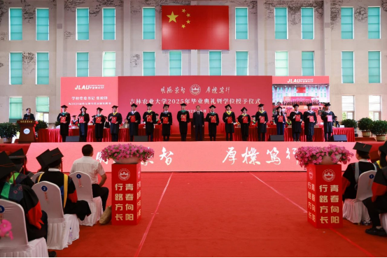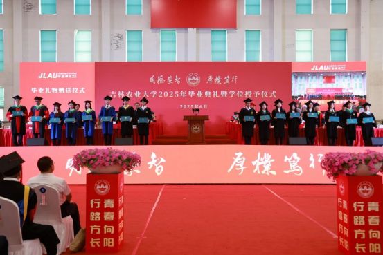 6月25日,学校在体育馆隆重举行吉林农业大学2025年毕业典礼暨学位授予仪式。学校党委书记张殿锋,校长李启云,党委副书记徐文生,纪委书记、纪检监察组组长、党委副书记(兼)王宏,副校长吕文发,党委副书记周春国,副校长孙文献,副校长马红霞,副校长周春涛出席典礼。