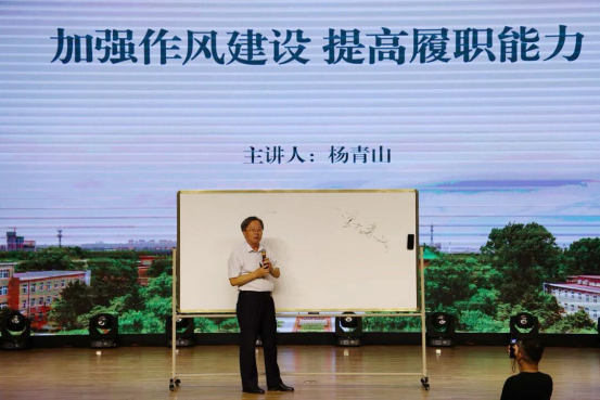 东北财经大学杨青山教授围绕“加强作风建设 提高履职能力”这一主题作专题辅导报告。