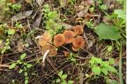 伴随众多食用菌,一些有毒蘑菇也悄悄钻进校园角落野蛮生长,如肉褐鳞环柄菇Lepiota brunneocarnea Rick、橘黄裸伞Gymnopilus junonius(Fr.)P.D.Orton等(见下图,图文顺序一致),这是需要警惕和防范的。