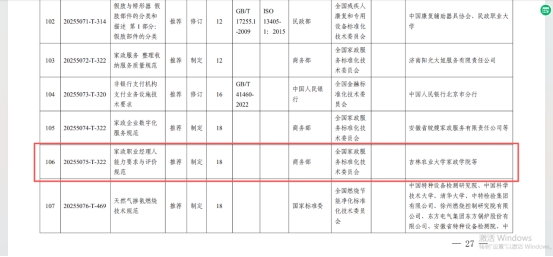 近日,国家标准化管理委员会下达了2025年第九批推荐性国家标准计划及相关标准外文版计划的通知,我校人文学院、家政学院主导申报的《家政职业经理人能力要求与评价规范》国家标准计划项目(20255075-T-322)获批立项。