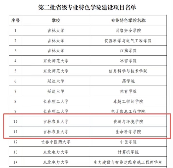 近日,吉林省教育厅印发《关于公布第二批省级专业特色学院建设项目名单的通知》,我校资源与环境学院、生命科学学院成功入选第二批省级专业特色学院建设项目。目前,学校共获批国家级专业特色学院培育项目1个、省级特色专业学院3个,充分彰显了学校在优势学科专业建设、特色人才培养领域的深厚积淀与鲜明优势。