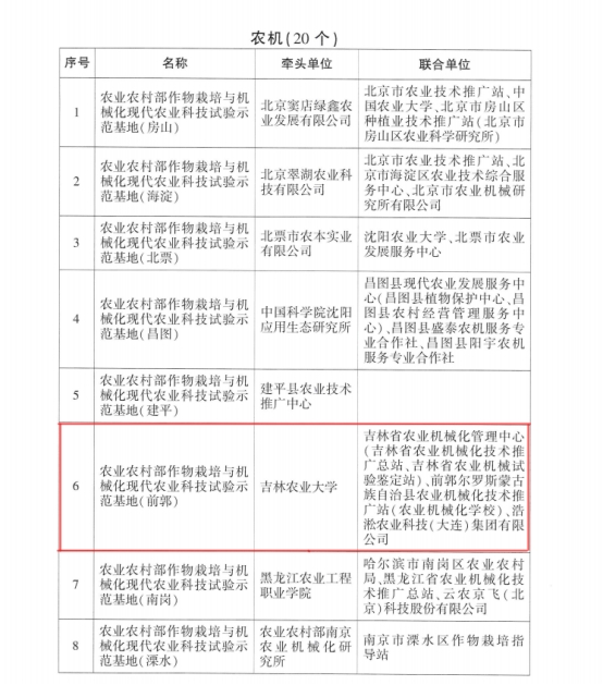 近日,农业农村部公布第一批农业农村部现代农业科技试验示范基地名单。我校农业农村部作物栽培与机械化现代农业科技试验示范基地(前郭)获批建设。