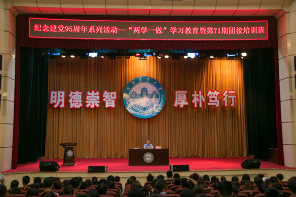 6月28日,学校在鲲鹏学生文化活动中心举办纪念建党95周年系列活动——“两学一做”学习教育暨第71期团校培训班。校纪委书记王志中作了题为《传承红色基因绽放青春风采 在实现中国梦的征程上建功立业》的首场专题辅导报告。