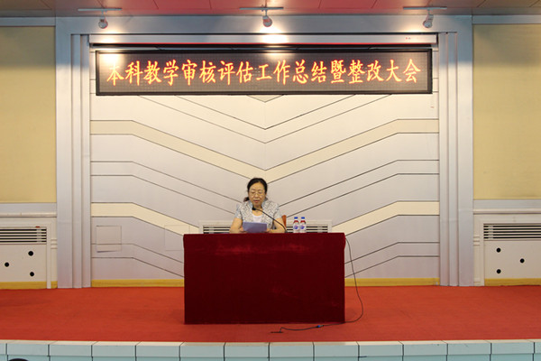 评估办公室主任、副校长陈光做了讲话,对全校各单位、审核评估工作组及评估办公室全体工作人员的辛勤付出给予了充分肯定,并对评估整改工作提出要求并做了部署,她指出,学校将实施“教学思想观念更新、教师育人能力提升、实践教学能力提升、大学生综合素质提升、教学质量保障体系建设、教学中心地位保障建设、教学信息化建设”七大工程,全面落实评估整改工作。她强调,全校教职工要以本科教学工作审核评估取得的优异成绩为契机,以更加昂扬的斗志,更加勤奋的工作,更加优异的成绩,团结一心,共同努力,攻坚克难,在校党委的正确领导下,按照学校的统一部署,开创教学工作的新局面。