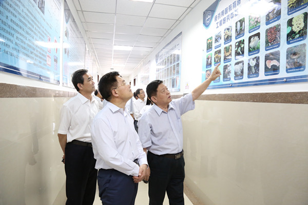 在食药用菌教育部工程研究中心,李晋修看望了中国工程院院士、我校教授李玉,李玉向李晋修简要介绍了全国食用菌产业发展态势,食用菌产业的“三个特征”和“五不争”特点,以及在维护国家粮食安全、供给侧改革、农村精准扶贫等方面的积极作用。李晋修详细查看了工程中心菌物标本馆、药用菌实验室、电镜显微室等实验平台、食药用菌精深加工产品展,并详细了解食用菌产品开发的产业化情况和发展前景。李晋修来到菌菜基地,查看菌物科技创新馆、菌物民俗文化馆、菌物产业馆,并实地察看了食用菌工厂化生产线和食用菌栽培新品种。