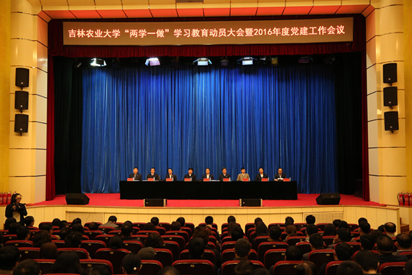 席岫峰代表学校党委作了“两学一做”学习动员报告,对2015年度党建工作作了简要总结,对2016年学校党建工作作了安排部署。他强调,全校各级党组织要认真贯彻落实中央和省委的部署要求,充分认识开展“两学一做”学习教育的重要意义,准确把握总体要求,教育引导广大党员积极参与、主动受教育,把解决问题贯穿学习教育全过程,务求学习教育取得实实在在的成效。要紧密围绕“四个全面”战略布局,坚持从严治党、依规治党,以“两学一做”学习教育为主线,突出思想政治建设、领导班子建设、基层党组织建设和党风廉政建设等重点,狠抓工作落实,统筹推进党的建设各项工作,充分发挥好党的工作优势和党组织、党员的先进模范作用,为“十三五”规划顺利实施,加快推进高水平教学研究型农业大学建设,提供坚强有力的政治和组织保证。