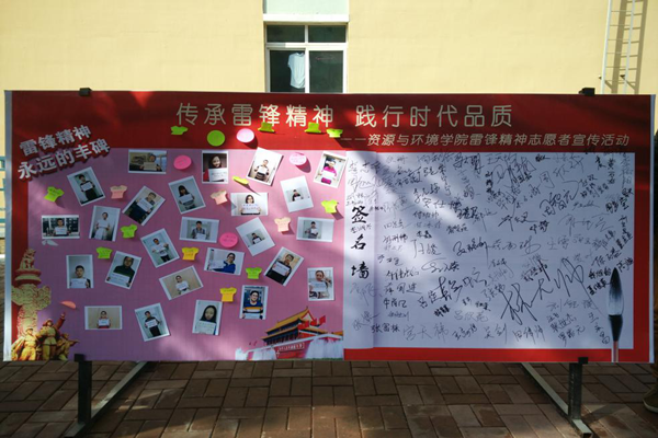我校研究生院和12个本科学院,分别开展了义务清雪、清理十一号楼楼内各教室讲台和桌子上的小广告及涂鸦、宣传“废物利用”的理念活动、“雷锋在我心中”线上寄语征集及“永不褪色的光彩”线下照片墙宣传等活动。