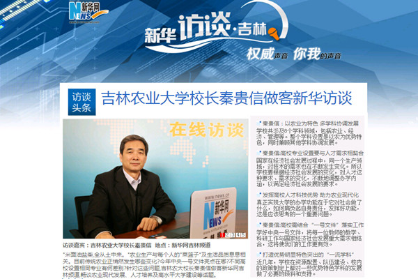 3月21日,校长秦贵信教授受邀做客新华网吉林频道,就目前传统农业正悄然发生哪些变化,今年中央一号文件亮点在哪,不同高校设置相同专业有何差别,农业现代化发展、人才培养及高水平大学建设等话题接受新华网吉林频道新华访谈栏目的专访。以下是专访网址链接。