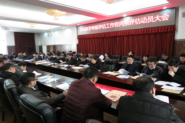 校党委书记席岫峰在讲话中指出,要统一思想、振奋精神,要全员动员、全力以赴,以良好的精神状态迎接审核评估工作;要严格抓好落实,将相关工作落实到具体岗位和责任人,要深刻把握评估内涵,按照相关任务分解,做精做细、做深做实,要实事求是找差距,扎扎实实做整改;要树立主人翁意识,发扬齐心协力、团结协作的精神,发扬诚实守信、求真务实的精神,认真找不足,切实抓整改,积极促建设;要充分认识到评估对学校“十三五”的建设目标和实现学校的“五大发展”的重要意义,为圆满完成审核评估工作,推动学校发展做出更大贡献!