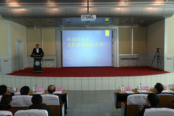 1月13日,在我校十一号楼报告厅,全国政协常委、中国科协副主席、书记处书记陈章良在我校做了题为《转基因技术与转基因食品安全》的专题报告。省委统战部副部长刘青春,省科协党组成员、副主席刘东华、韩宇鸿,省科协副巡视员刘伟;我校校长秦贵信,中国工程院院士、我校教授李玉,副校长张越杰出席了报告会。报告会由省科协党组书记、副主席李景涛主持。