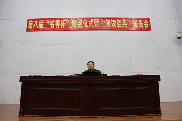 12月23日,学校在十六号楼报告厅举办第八届“书香杯” 暨“阅读经典”报告会。副校长陈光出席了活动。