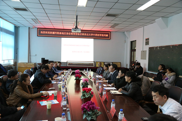 12月17日,新疆阿勒泰地区科技局局长海拉提·兑色巴依一行16人到我校中药材学院实地考察。