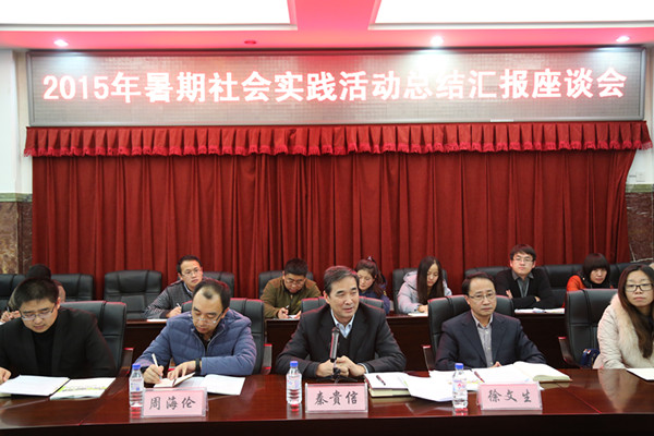 12月9日,学校在一号楼1区第五会议室召开了2015年暑期社会实践总结汇报座谈会。校长秦贵信,团省委学校部部长周海伦出席会议。会议由校党委副书记徐文生主持。