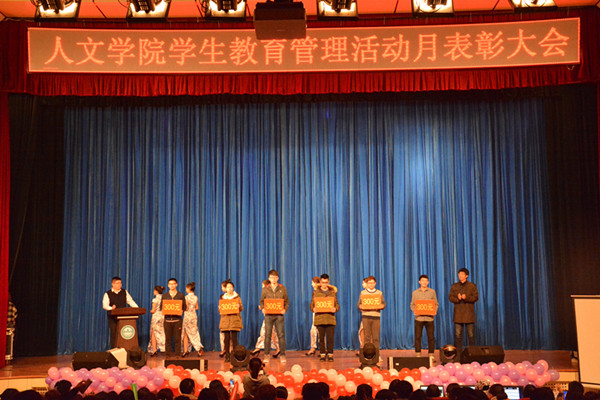 学院党委书记郑秀峰对学生教育管理活动月进行了总结,宣读了《关于表彰人文学院学生教育管理活动先进集体名单》;学院院长周建忠、学校学生工作处相关工作负责同志为获奖班级颁奖。歌唱比赛经过激烈角逐,李南池、徐赫卿、文景瑄同学分获冠、亚、季军。