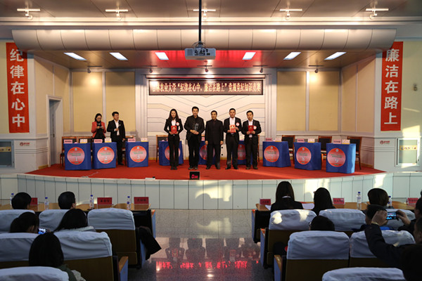 11月11日,学校在十一号楼二楼报告厅举办了“纪律在心中 廉洁在路上”党规党纪知识竞赛决赛。校领导席岫峰、秦贵信、孙少平、徐文生、李新观看了比赛。
