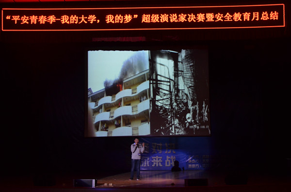 学校通过新生各班召开以“大学生安全”为主题的班会、为期一周的安全教育主题宣传展与“校园安全文化墙”活动、校规校纪及安全知识竞赛、“平安青春季—我的大学,我的梦”超级演说家比赛等寓教于乐的文化活动,为师生提供了学习安全知识的平台。同时,学校对安全教育月活动中先后评选出的一系列先进集体与个人进行了表彰。
