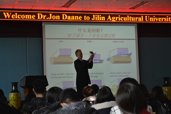 此次报告由农学院副院长袁海滨主持。Jon Daane系统的讲述了农业创新变得日趋复杂的原因,以及农业类大学在培养学生创新能力采取的方法和措施。
