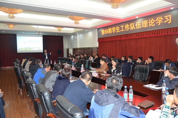 调研会在一号楼1区第五会议室举行,会议由学生工作处处长董雅致主持。邬小撑为我校全体学生工作人员做了题为《基于学生发展需求的思政队伍建设的思考与实践》主题报告,讲解了思政工作的价值所在,思政工作的路径探讨、辅导员专业化、职业化等问题,介绍了学生工作队伍建设的主要做法。