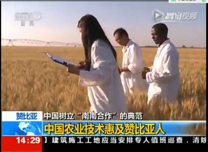 9月27日,中央电视台新闻直播间以《中国树立“南南合作”的典范 赞比亚:中国农业技术惠及赞比亚人》为题,对我校承建的中国援赞比亚农业技术示范中心的运行情况进行了采访报道。