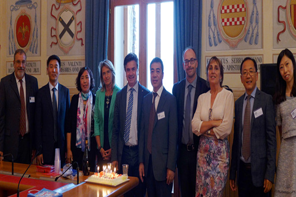 访问意大利卡麦利诺大学期间,代表团一行参加了两校合作办学2015年年会。席岫峰与卡麦利诺大学校长弗拉维奥进行了亲切会谈,双方共同回顾了两校十年合作历史,充分肯定了合作成就,达成了本着“促进发展面向未来 合作共赢”的原则,在原有合作基础上进一步扩大合作领域的共识。双方就项目人才培养方案和项目新一轮协议的相关内容进行了认真磋商并达成共识,席岫峰与弗拉维奥分别代表两校签署了《中国吉林农业大学—意大利卡麦利诺大学合作举办生物技术专业本科教育项目协议》和《中国吉林农业大学—意大利卡麦利诺大学合作举办生物技术专业人才培养方案》。会议期间,卡麦利诺大学举行了热烈的“两校合作十周年”庆祝仪式。