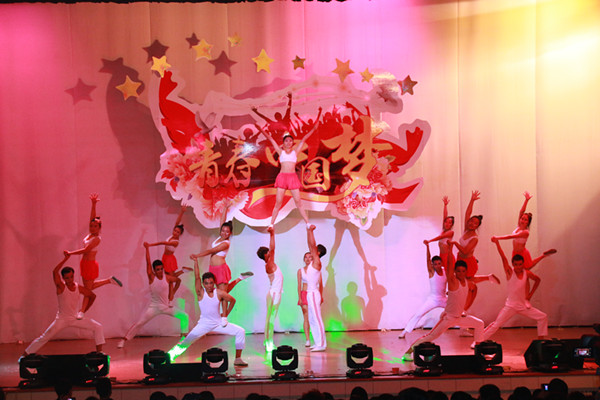 晚会在我校大学生艺术团军乐团演奏的管弦乐合奏《威廉退尔》和《中国军魂》中拉开序幕。 2015级新同学们表演的舞蹈《青春正能量》,表达了新同学们对美好大学生活的期待与向往;由我校国际教育交流学院选送,来自俄罗斯、意大利、美国、韩国等国家的留学生们带来的具有异国风情的歌舞表演赢得了在场观众的阵阵掌声;晚会在校大学生艺术团声乐团参加全国大学生艺术展演的合唱曲目《在希望的田野上》落下帷幕。