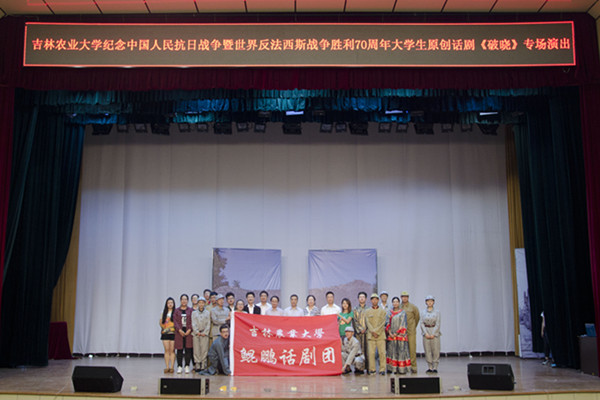 9月1日晚,学校在鲲鹏学生文化活动中心举办了纪念中国人民抗日战争暨世界反法西斯战争胜利70周年大学生原创话剧《破晓》专场演出。校党委书记席岫峰,副校长陈光,校党委副书记徐文生,校纪委书记李新出席了活动。