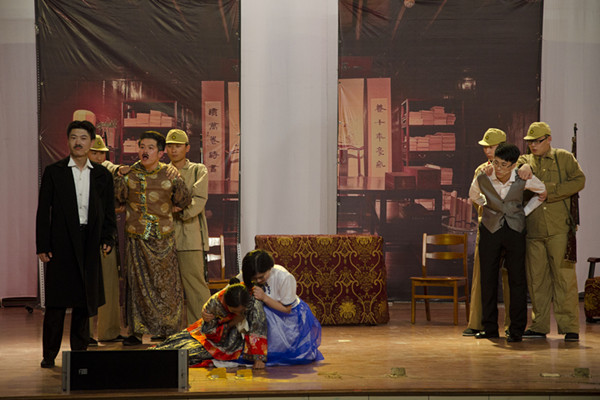 话剧《破晓》是我校鲲鹏话剧团为纪念中国人民抗日战争暨世界反法西斯战争胜利70周年,经过半年多的时间精心创作编排的抗战剧目。话剧以抗日战争为时代背景,讲述了徽州婺源县的鸳鸯镇社会各阶层人士面对国仇家恨团结一致、共同抗战,最终为抗战胜利做出重大牺牲的感人故事。